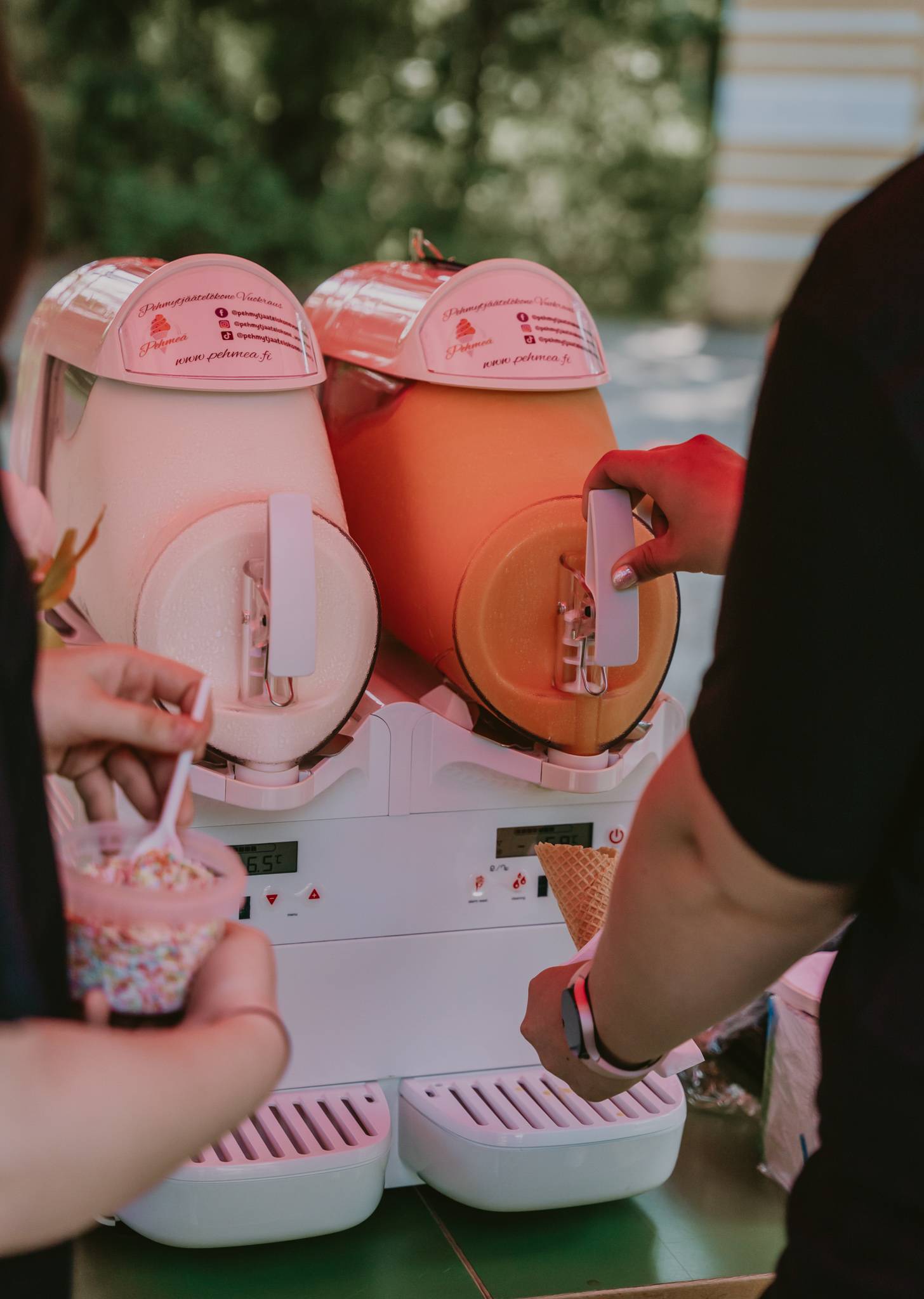 Pehmytjäätelökonevuokraus Uudellamaalla, muualle Suomeen sopimuksen mukaan. Pehmytjäätelökone on hauska ja herkullinen ohjelmanumero, joka tuo iloa monenlaisiin tilaisuuksiin – syntymäpäiville, toimistojuhliin, baby shower -juhliin, häihin tai kesäisiin lettukesteihin! Yllätä ystäväsi tarjoamalla pehmeää jäätelöä suoraan koneesta – tämä on takuulla juhlan hauskin ja maukkain yllätys. Lisäksi pehmytjäätelökone sopii täydellisesti messuille, yritystapahtumiin tai toimiston piristykseksi! Tuo herkullinen jäätelökokemus työpaikalle ja luo rento, virkistävä ilmapiiri kaikille.